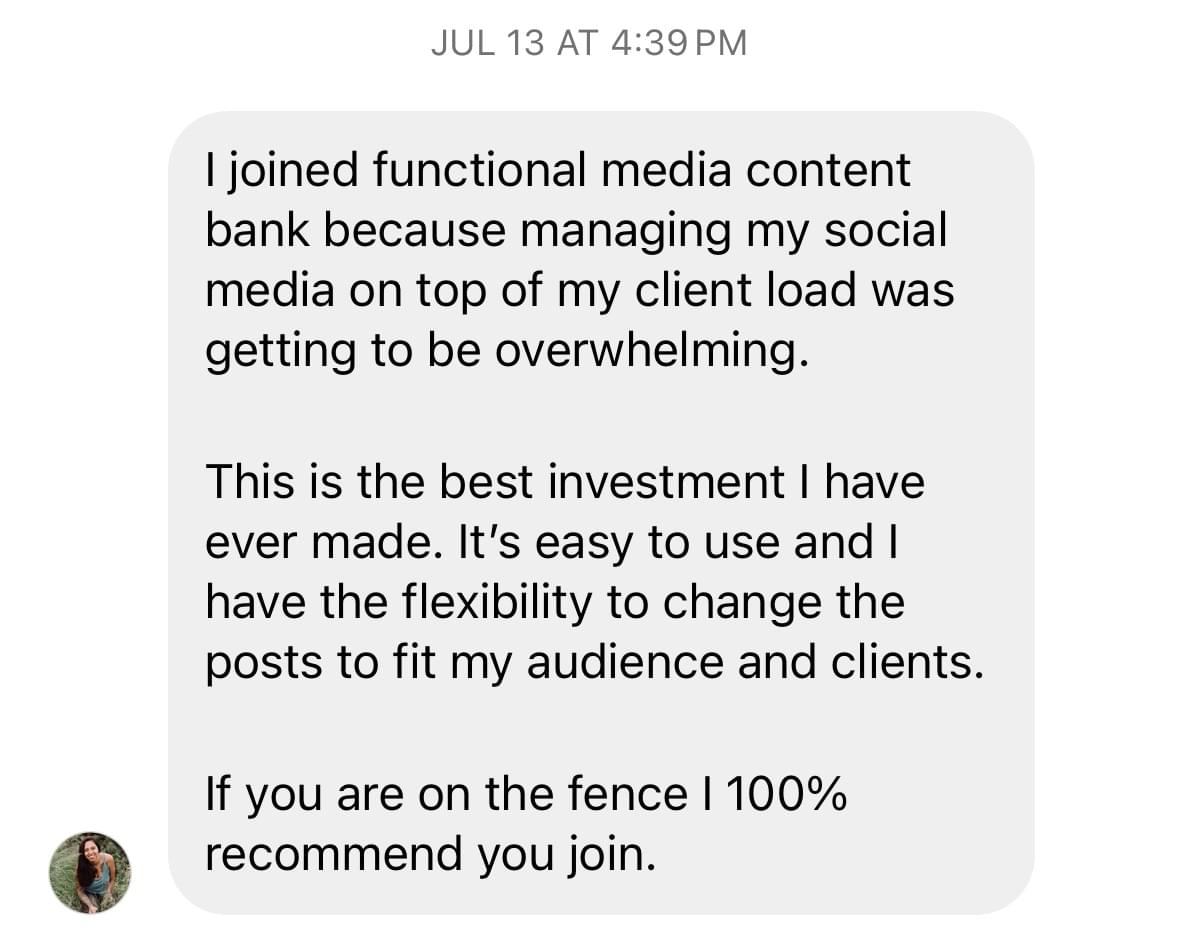 💡 The Content Bank is strategically organized to provide a balance of both persuasive and informative posts meant to both enrich your followers lives and build the sort of trust that convinces them to become your next patient. You can expect posts like: